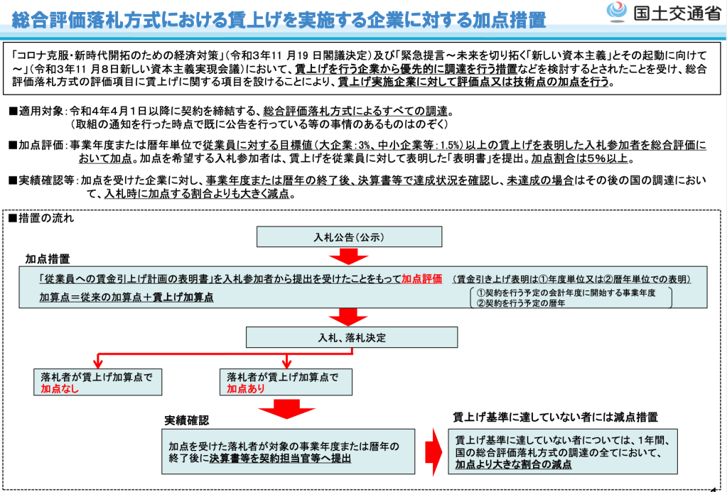 「総合評価落札方式における賃上げを実施する企業に対する加点措置」(国土交通省)(2022.3.19最終確認)